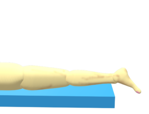 ②足関節を底屈位にしたまま膝関節を90°まで自動屈曲させる。