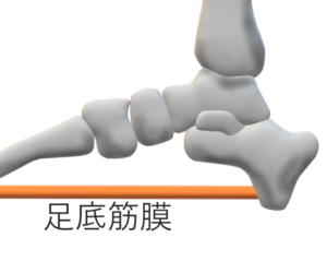 足底腱膜炎は足底腱膜の損傷で, 圧痛部位は一般的に内側縦アーチ部に存在する. ランニングなどにより,外力が繰り返し足底腱膜に加わることで発生する.踵骨棘との直接的な関連性はないといわれるている