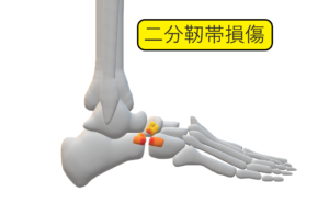 d.ニ分靱帯損傷(ショバール関節の外側:踵骨と舟状骨ならびに立方骨を結ぶ靱帯)