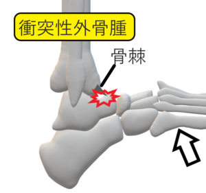 本当の痛みの原因⇒肥厚した関節包などが、足関節伸展で骨棘に挟み込まれている説