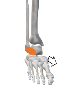 伸展(背屈)と内転強制⇒滑車の外側前方が腓骨の外果内側関節面と衝突