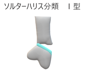第1型:三角形の骨片を生じる骨片骨折となります。