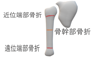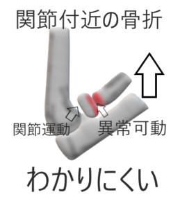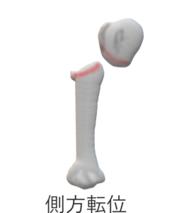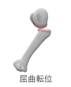 長骨の全長にわたって湾曲が変化するもので、受傷直後はⅩ線には映らない。
