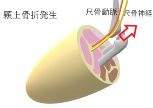 打撲、衝撃など直接的な外力で発生する骨折です。
