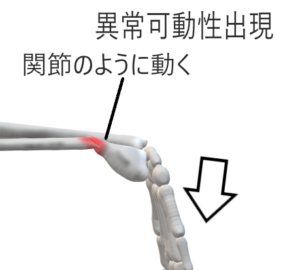 第2型:骨の一側が固定さえて他側に屈曲力が働き発生します。