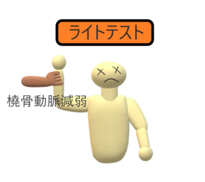 判定:橈骨動脈拍動消失で過外転症候群陽性