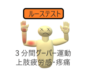 上肢の疲労感、疼痛が誘発され、運動が継続できないものを陽性とする