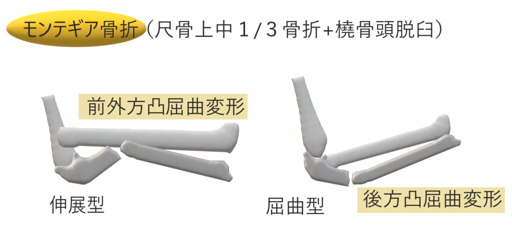尺骨骨幹部上中1/3境界部の骨折+橈骨頭脱臼