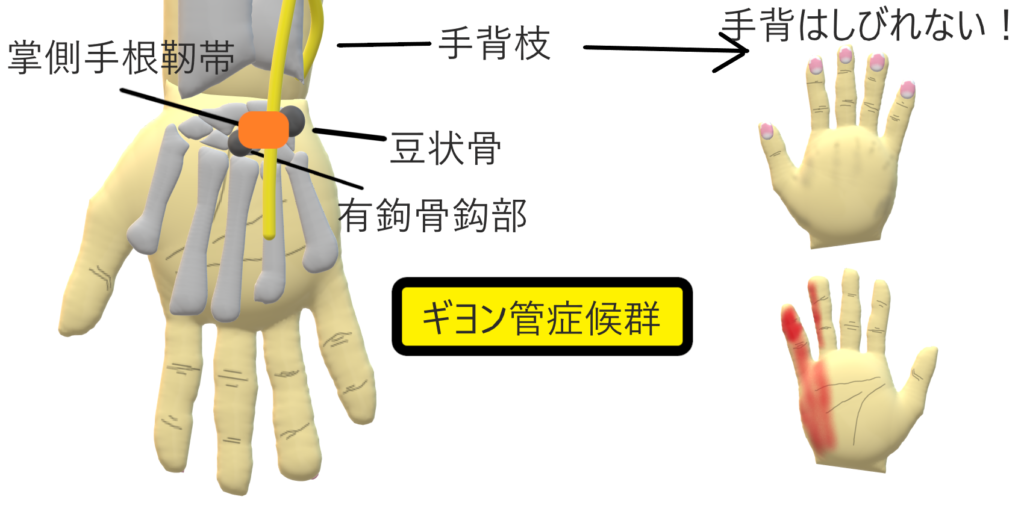 尺骨神経管症候群(ギヨン管)との鑑別が必要
