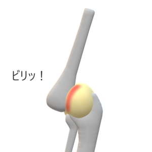 三頭筋腱が索状に触れるのは新鮮なときのみ。時間経過と共に腫れが大きくなりわかりづらくなる