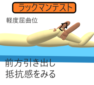 Nテストの逆動作。膝伸展位からのリバーステストで前外側回旋不安定性整復テスト