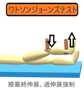 ➂ワトソンジョーンズ(実技教科書):背臥位。膝関節過伸展強制