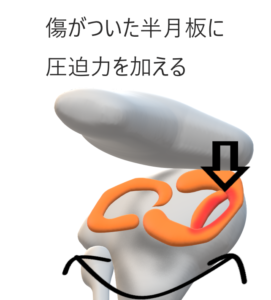 徒手検査ポイント:傷ついた半月板に圧迫力を加える