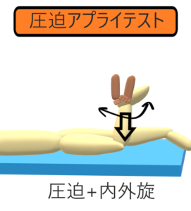 ➁圧迫アプライテスト:腹臥位、膝90°屈曲。下腿長軸方向に圧迫