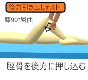 ➀前方引き出しテストanterior drawer test:股45°、膝90°