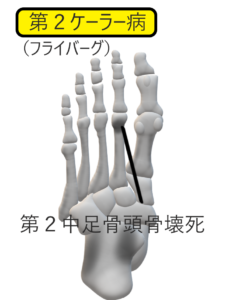 第2中足骨頭の骨破壊変化による中足骨痛。